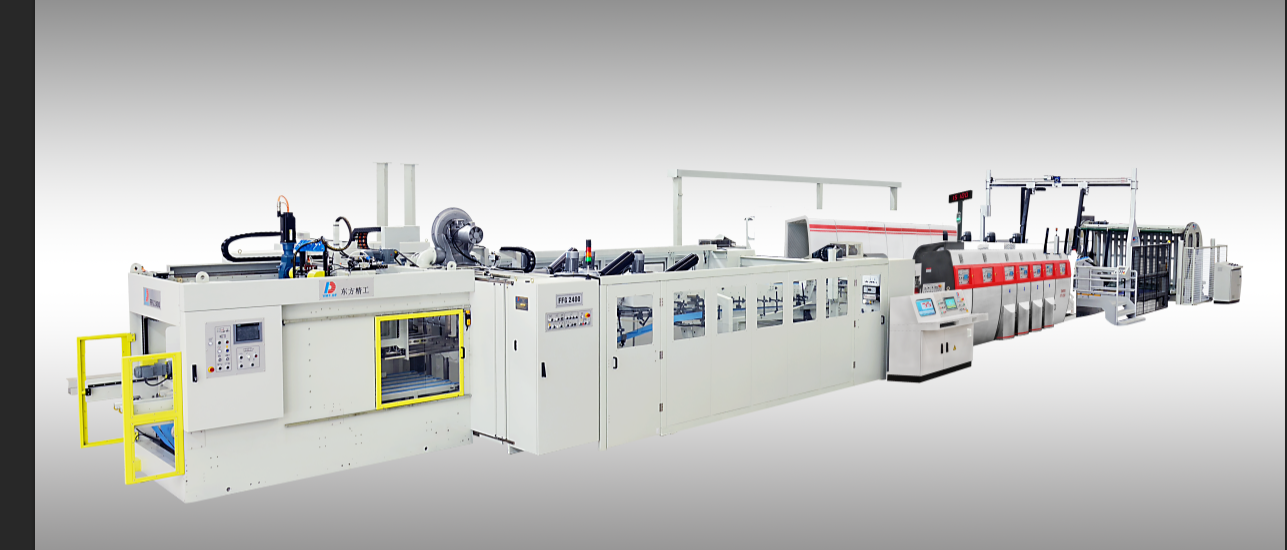 Dong Fang new open-close type inline folder gluer casemaker can be operated by only two operators; The unique structure makes the folder gluer stably transfer the paperboards; The newly designed “sandwich belt” improves the fishtail and gap precision; A more compact structure of counter ejector for higher running speed, which can reach up to 25 bundles per minute. In addition, in order to ensure that the printing folder gluer linkage line achieves the satisfactory from users, Dong Fang Precision has solved the problem of carton forming by adopting advanced concepts.